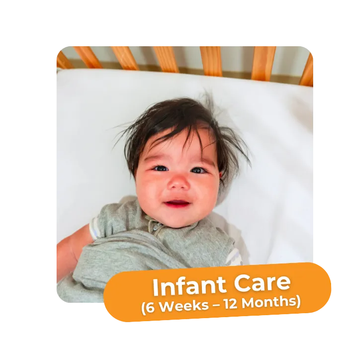 Our caregivers provide a loving and nurturing environment for infants. Activities include tummy time, first steps, and developmental play. Sign language is introduced to promote early communication, and schedules are tailored to ensure a smooth transition from home to daycare.